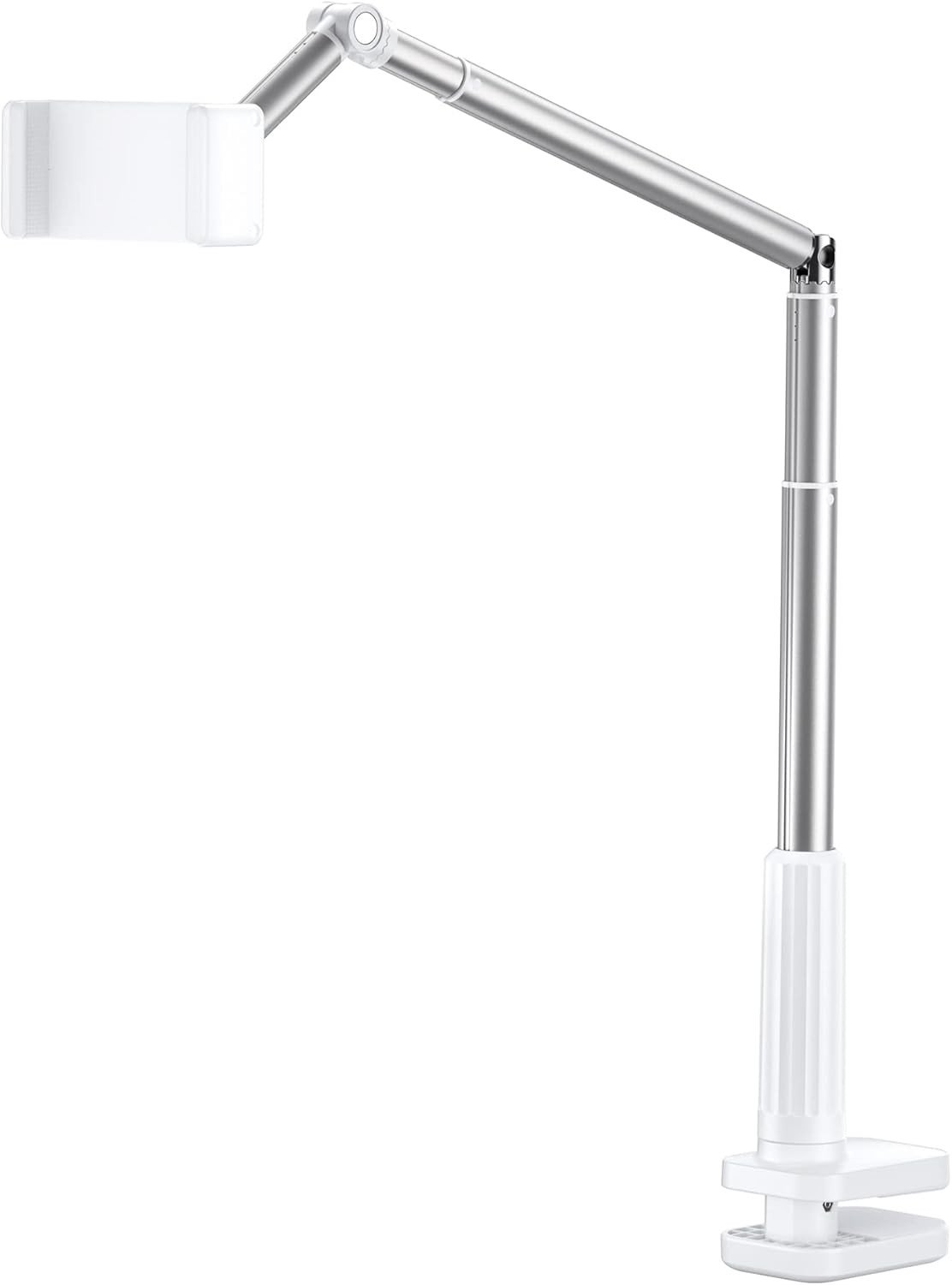 LanPavilion Tablet Floor Stand with Upgraded Weighted Base, Adjustable Arm Tablet Stand Phone Holder for Bed Sofa Use, Compatible with iPad Pro, Air, iPhone, Samsung Tab, Kindle, 4.7''-13'' Devices