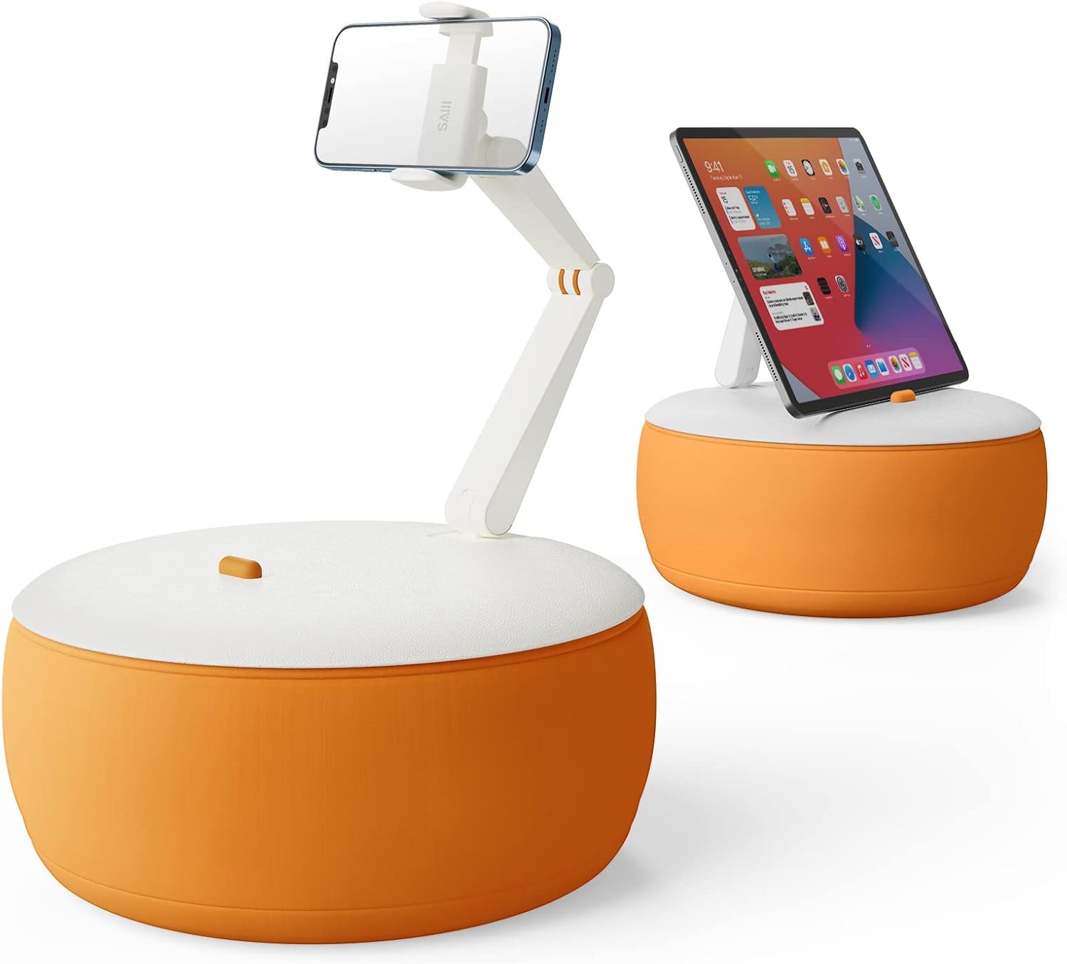 SAIJI Pillow Stand, Soft Phone Holder Pillow for Bed, Tablet Cushion with Bean Bag Base and 360° Viewing Angles, Securely Holds at Any Angle on Any Surface, Use for Lap Sofa Bed Desk - Orange