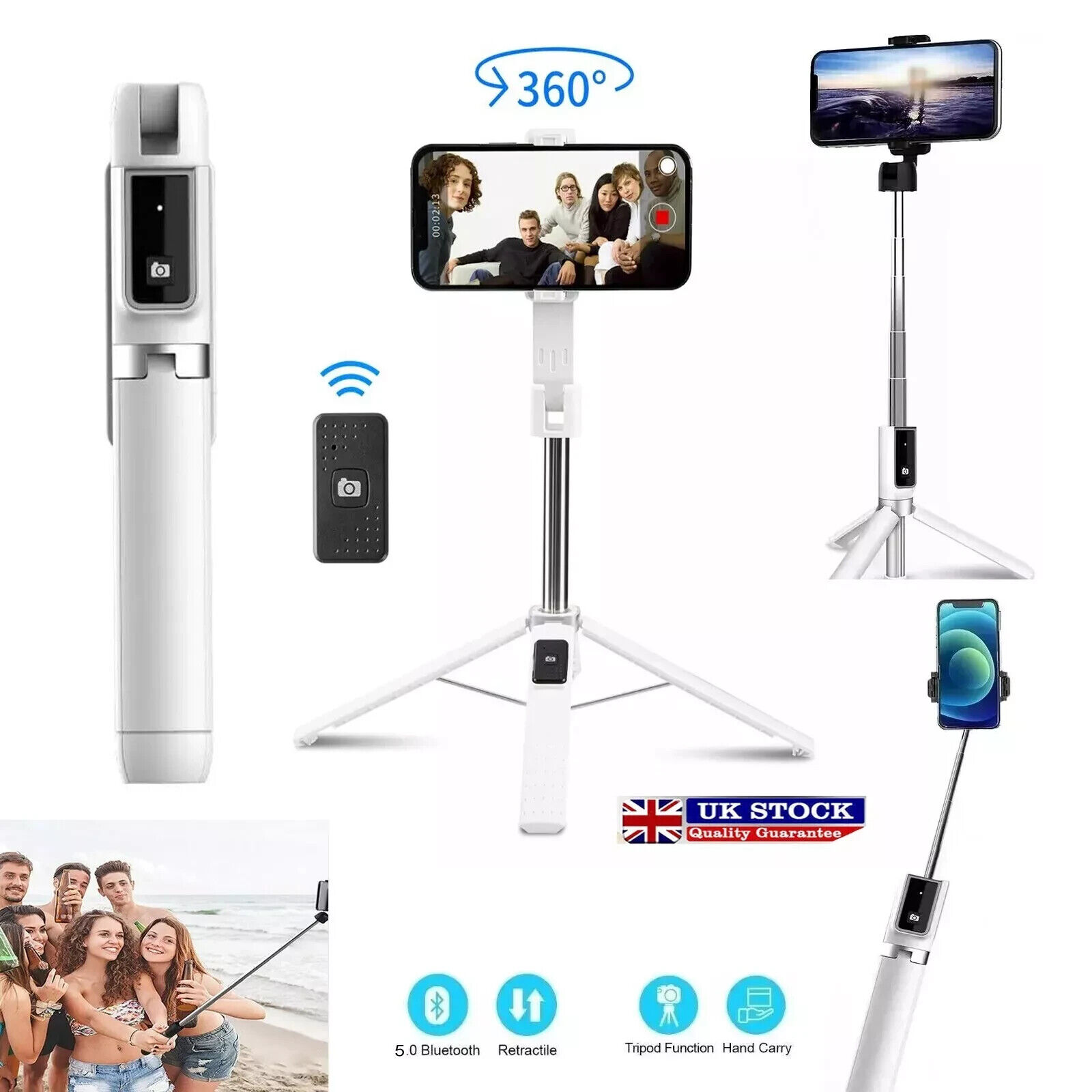 Selfie Stick Bluetooth Remote Phone Holder Tripod Stand For i.Phone Universal UK