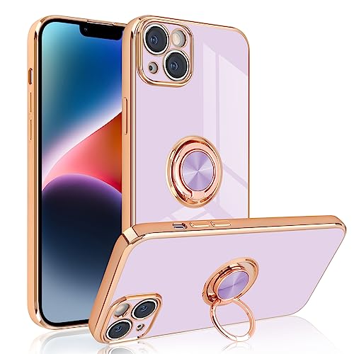 Newseego Electroplated Magnetic iPhone 14 Plus Case, 360 Degree Rotation Finger Ring Holder Phone Case Magnet Car Stand Soft Silicone Shockproof Protective Bumper Cover for iPhone 14 Plus-Purple