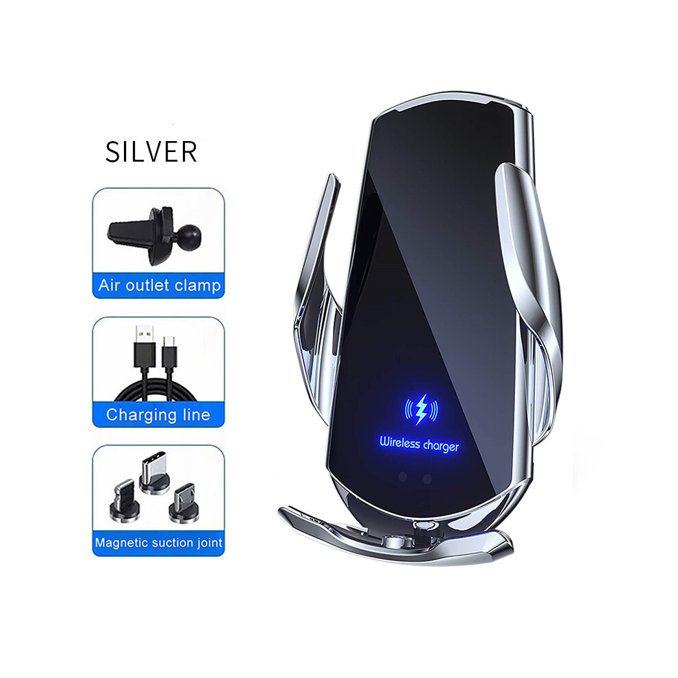 (Silver) 30W Wireless Car Charger Automatic Magnetic Chargers Clip On Phone Holder Air Vent