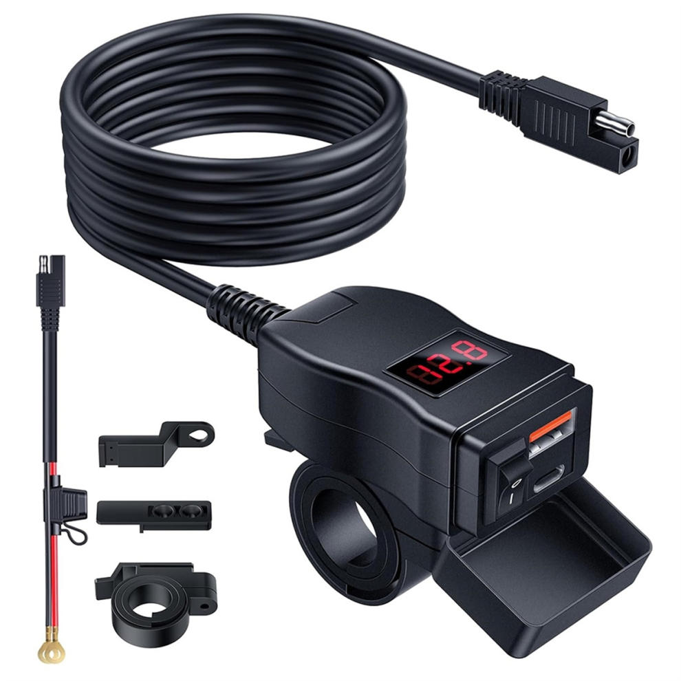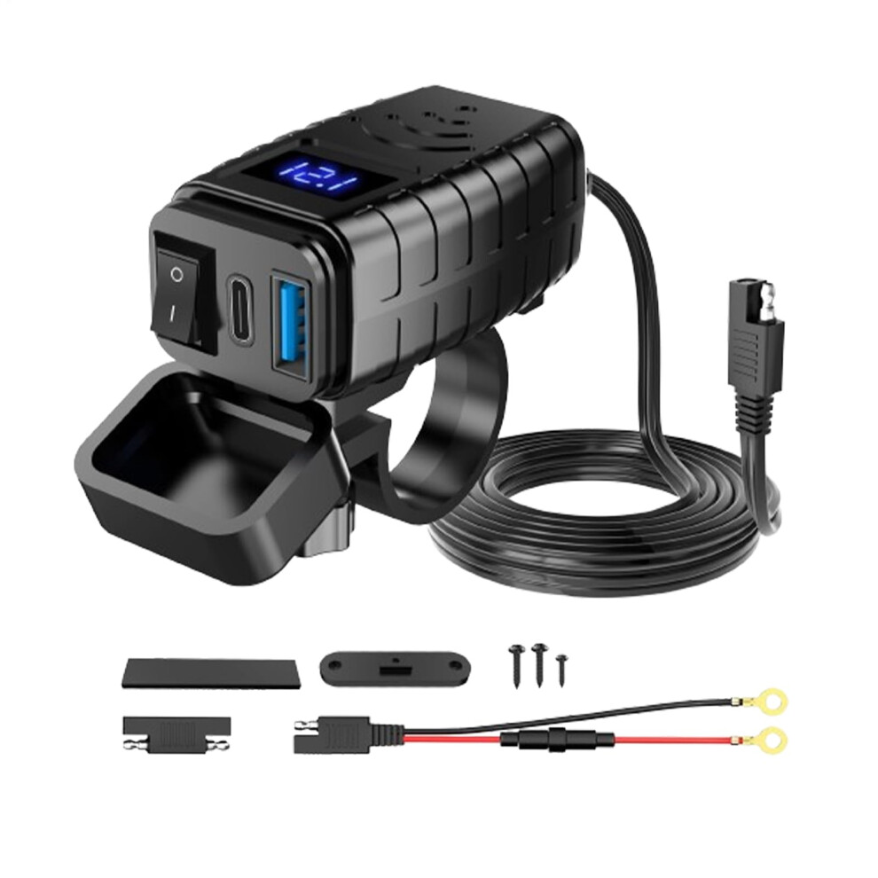 Motorcycle USB Charger, Dual Type C PD & Quick Charge 3.0 Phone Charger with Voltmeter On/Off Switch