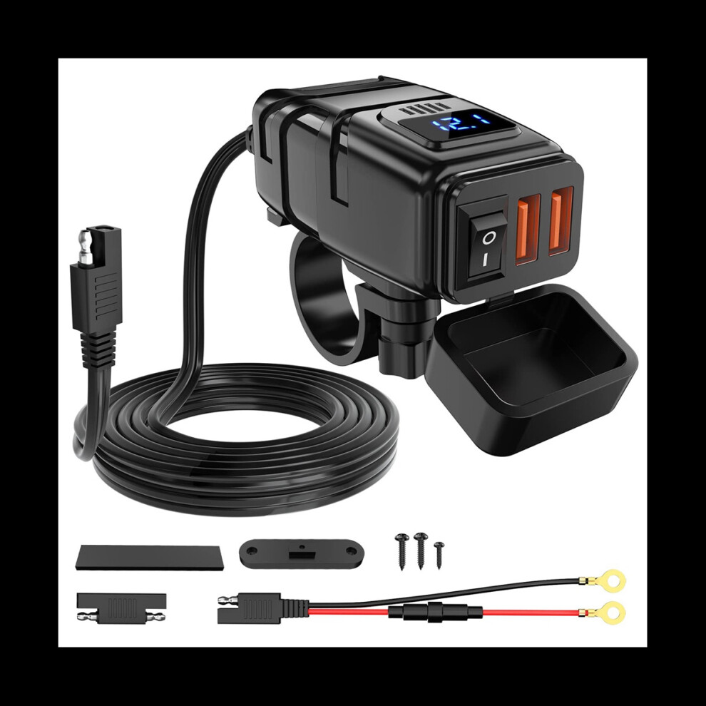 Motorcycle USB Charger, 6.8A Quick Charge 3.0 Dual USB Motorcycle Phone Charger with Voltmeter & ON/Off Switch