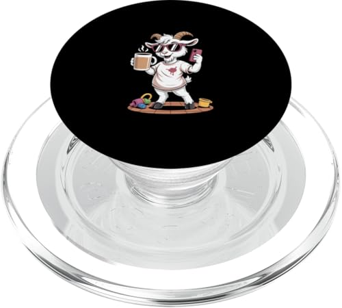 Funny Coffee Goat With Sunglasses And Phone PopSockets PopGrip for MagSafe