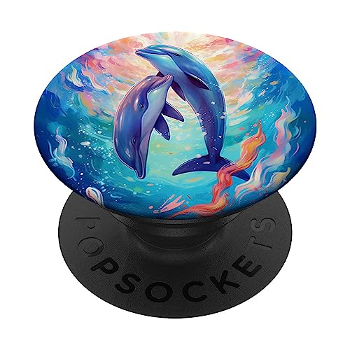 BHAPPY Pop Socket Grip Stand Dolphins - Swappable Top - Black - Phone Grip - Compatible with Most Smartphones and Tablets
