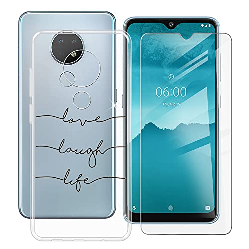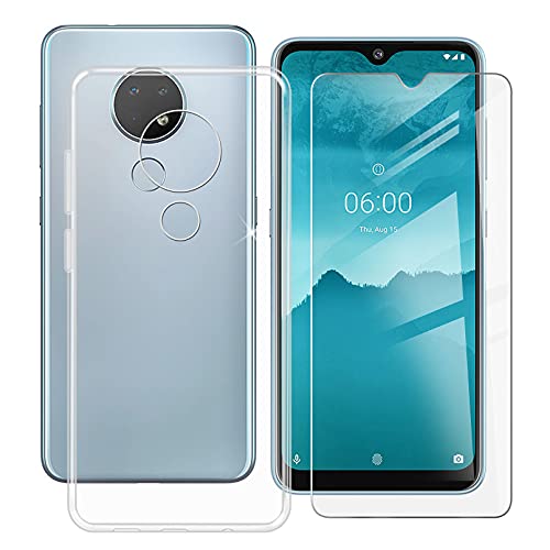 HHUAN Case for Nokia 6.3 (6.44 inch) with 1 Tempered Glass Screen Protector, Clear [Anti Yellow] Soft Silicone Protective Cover, TPU Shockproof Phone Cover for Nokia 6.3 - WMA24