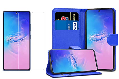 Galaxy S10 Lite Case, Galaxy S10 Lite Book Case, PU Leather Wallet Case [Card Holder][ID Holder] Slim Flip Folio Protective Phone Case with Tempered Glass Screen Protector for Galaxy S10 Lite (BLUE)