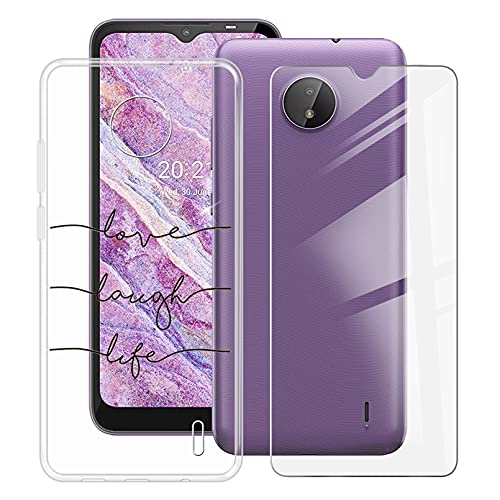HHUAN Case for Nokia C10 (6.52 inch) with 1 Tempered Glass Screen Protector, Clear [Anti Yellow] Soft Silicone Protective Cover, TPU Shockproof Phone Cover for Nokia C10 - WM92
