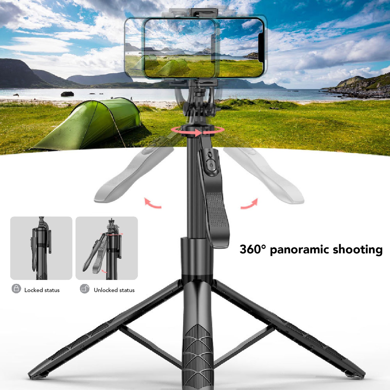 Automatic Phone Tripod Extendable Selfie Stick With Detachable BT Remote Co BAJ