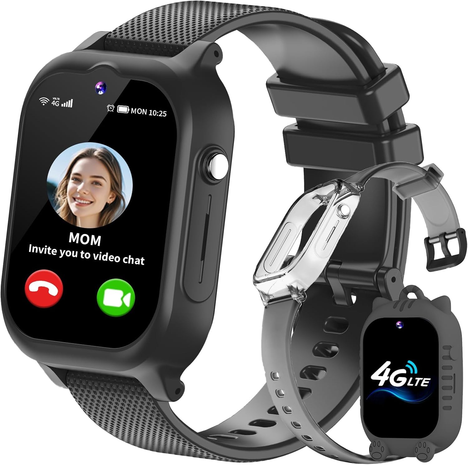 Ucani 4G Kids Smart Watch, Kids Phone Smartwatch GPS Tracker, SOS, Call, Voice & Video Chat, Class Mode, Alarm, Camera, Touch Screen WiFi Wrist Watch for 4-12 Boys Girls (A28-Black-UKLOC)