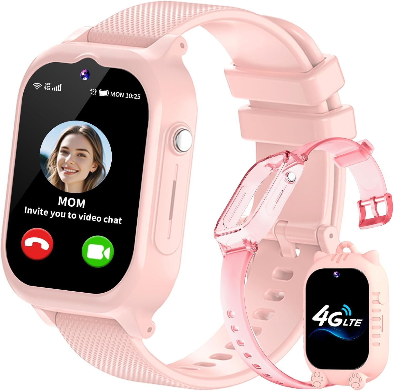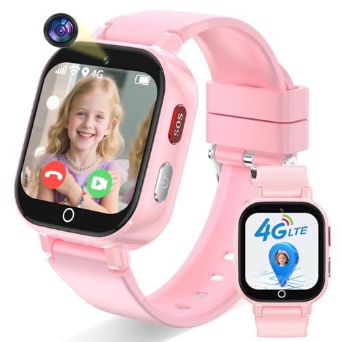 Ucani 4G Kids Smart Watch, Kids Phone Smartwatch GPS Tracker, SOS, Call, Voice & Video Chat, Class Mode, Alarm, Camera, Touch Screen WiFi Wrist Watch for 4-12 Boys Girls (A28-Pink-UKLOC)