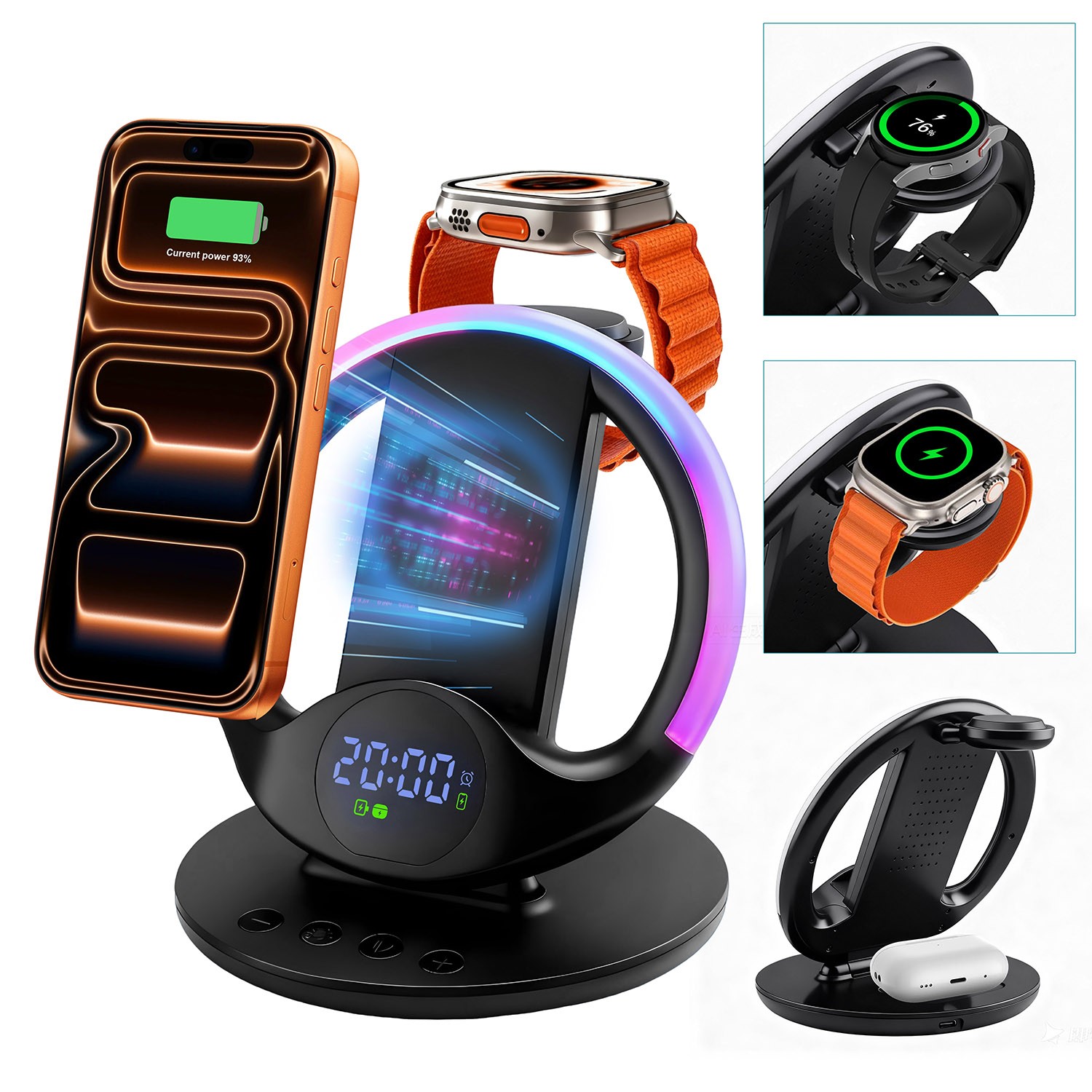 Chronus Wireless charger, 6 in 1, fast charging,15W/10W/7.5W, compatible with iPhone, Samsung Watch, Airpods and iPhone 15/15Plus/15Pro/15Pro(Black)