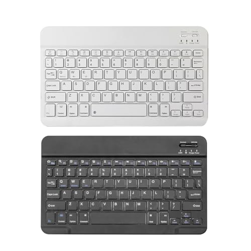 RGB Backlit Ultra Slim Ergonomic Keyboard, 10 Inch Portable Keyboard for Android Tablet Phone with Li Battery, Individual Scissor Keycaps (White)