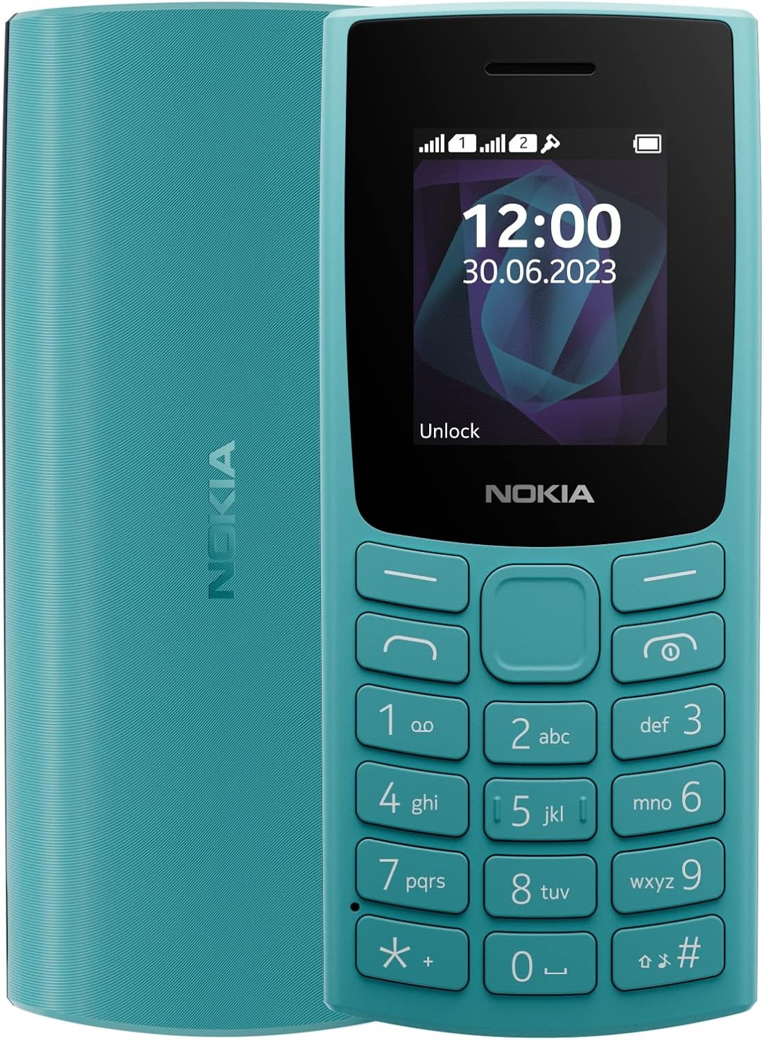 Nokia 105 2G Feature Phone with long-lasting battery, 12 hours of Cyan