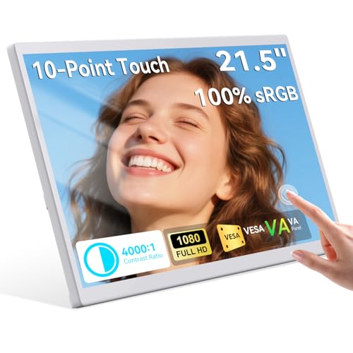 Prechen 21.5 Inch Portable Touchscreen Monitor, 1080P Portable Gaming Monitor w/VESA Stand Touch PC Display, 75Hz, Multi-Touch Monitor, VESA, HDMI & USBC for Phones PC Phone Business