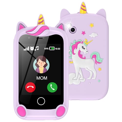 Grriopi Kids Phone, 6 7 8 Year Old Girl Gifts for 3-12 Year Olds Girl Toys Age 4 5 6 7 Toy Phone Kid Toys for Girls Unicorn Gift for Girls Birthday Presents Mobile Phones Easter Gifts for Kids Pink