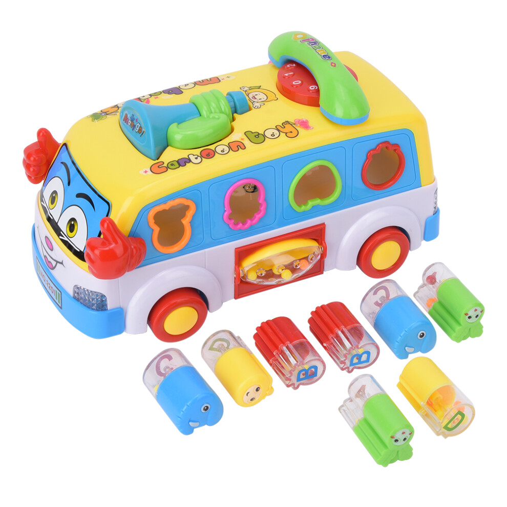 Musical Phonics Learning Bus for Toddlers, Interactive Electronic Talking Toy with Shape Matching and Animal Learning Features for Kids Aged1-4Years