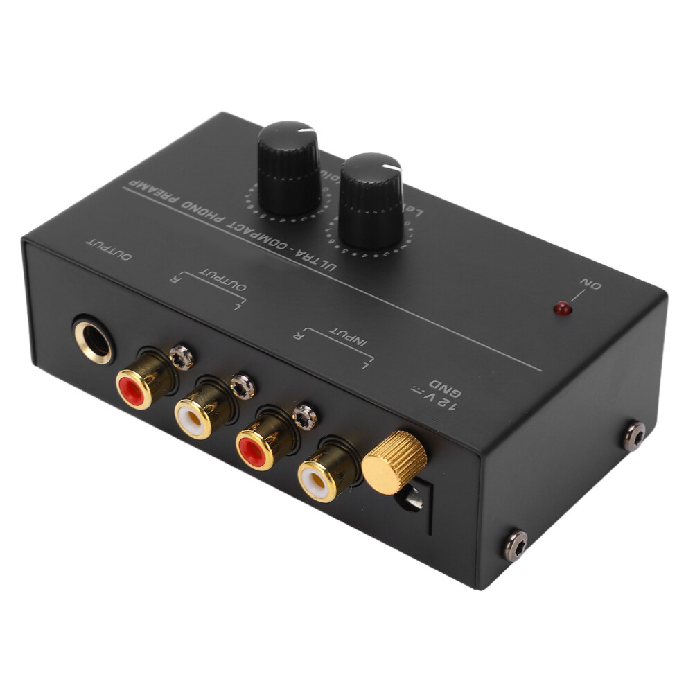 Compact Black Phono Preamplifier 35dB Signal Boost with RIAA 0.06% THD