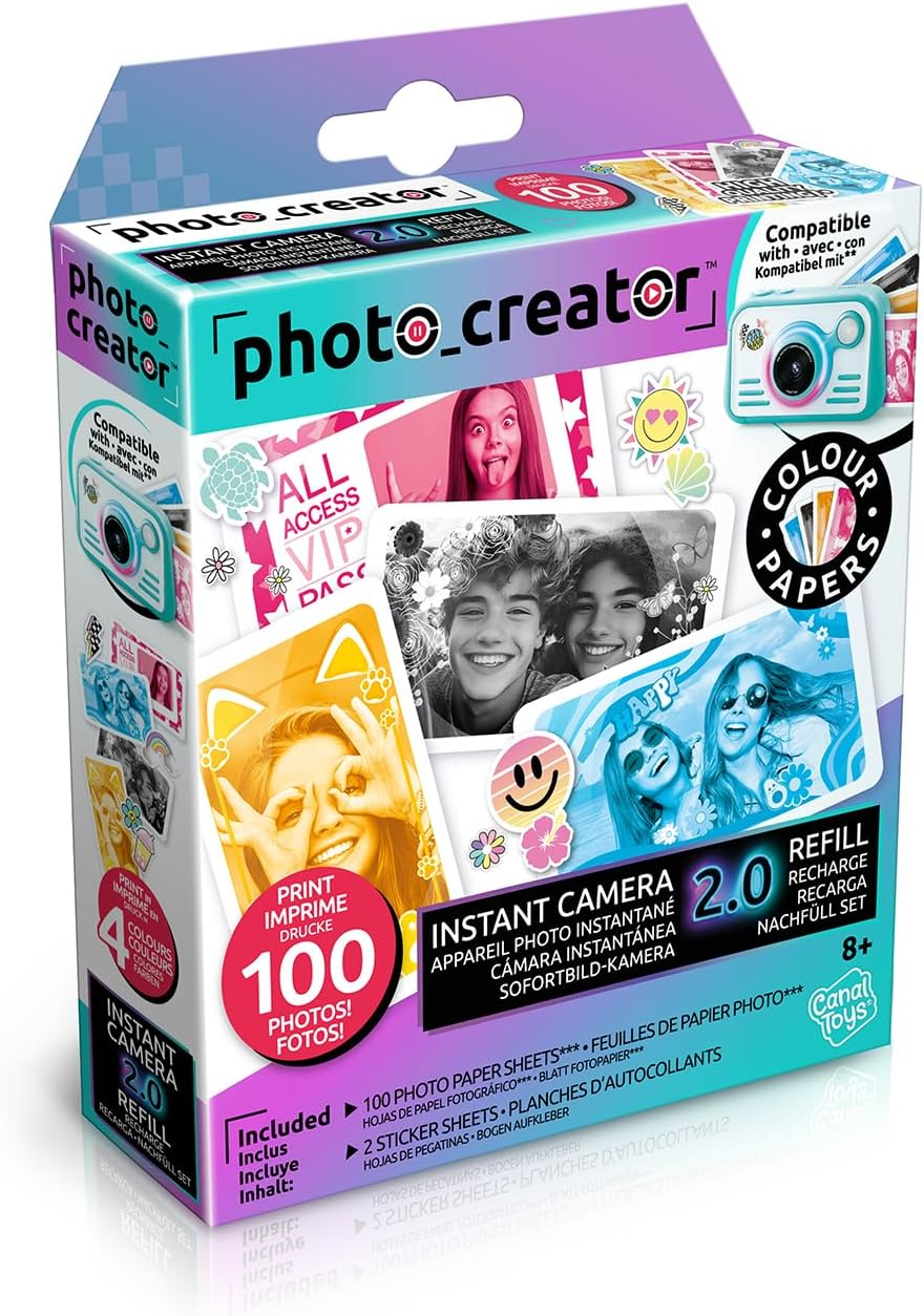 Photo Creator Instant Print Camera 2.0 Photo Paper Refill Kit, Glossy Photo Paper, 100 Pictures, 2 Sticker Sheets, Age 8+