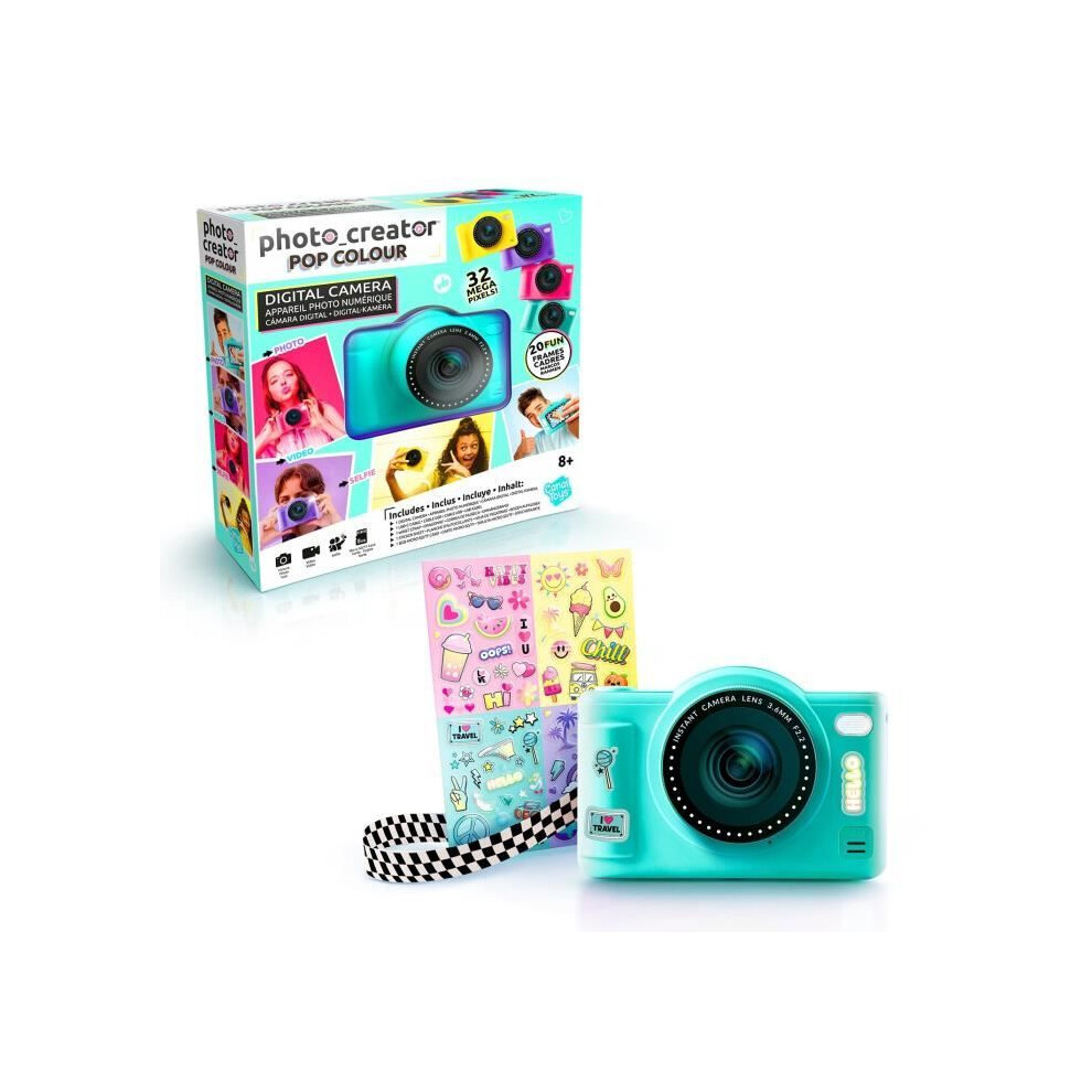 Canal Toys - Photo Creator Pop Colour Digital Camera Turquoise and Purple - 32MP Kids Camera with 2.4" Screen, Selfie Lens, Flash & 8GB Memory Card Each - Fun, Customizable & Ideal for Kids Aged 8+