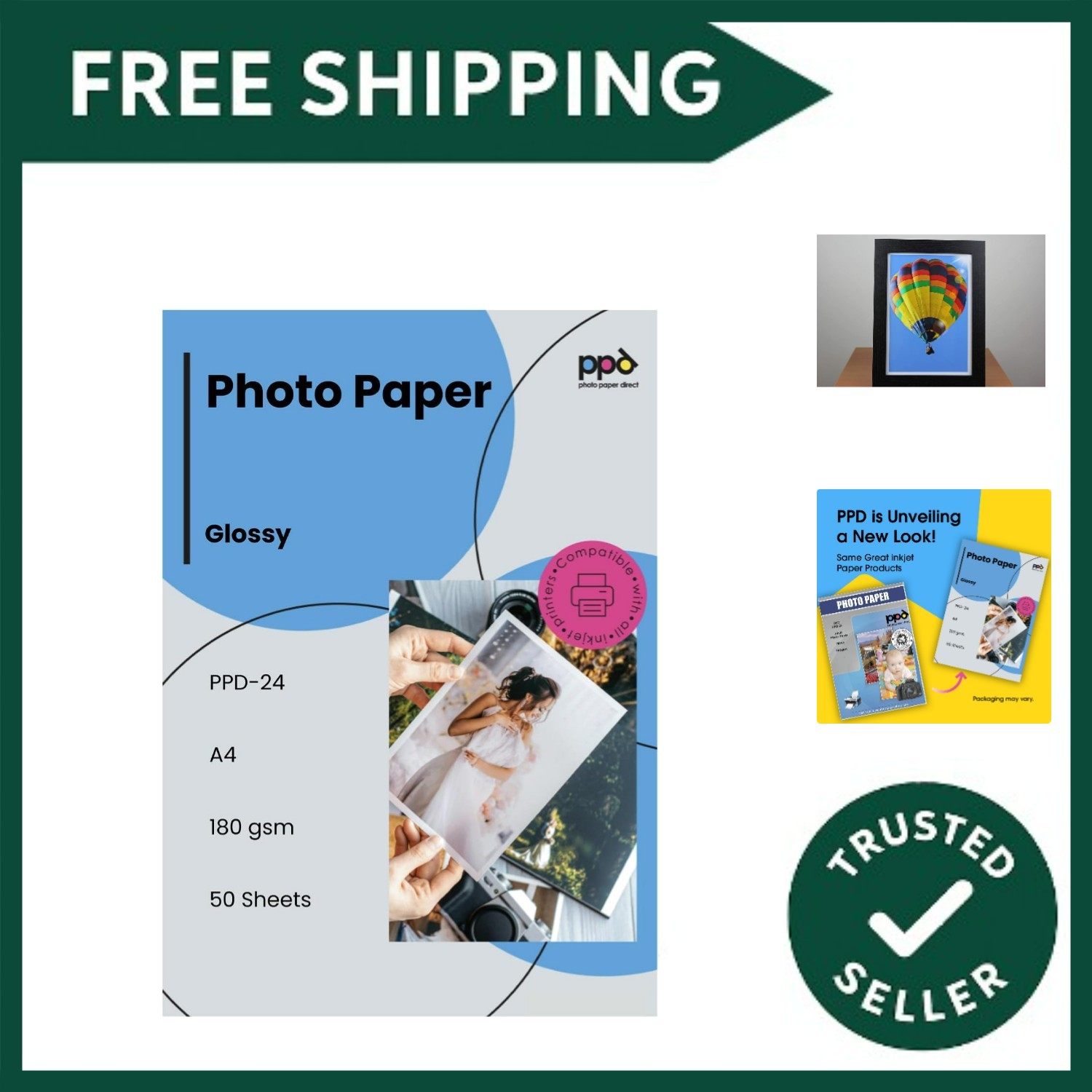 PPD Glossy Photo Paper for Inkjet Printer, 5 x 7 Premium Quality Printable Shee