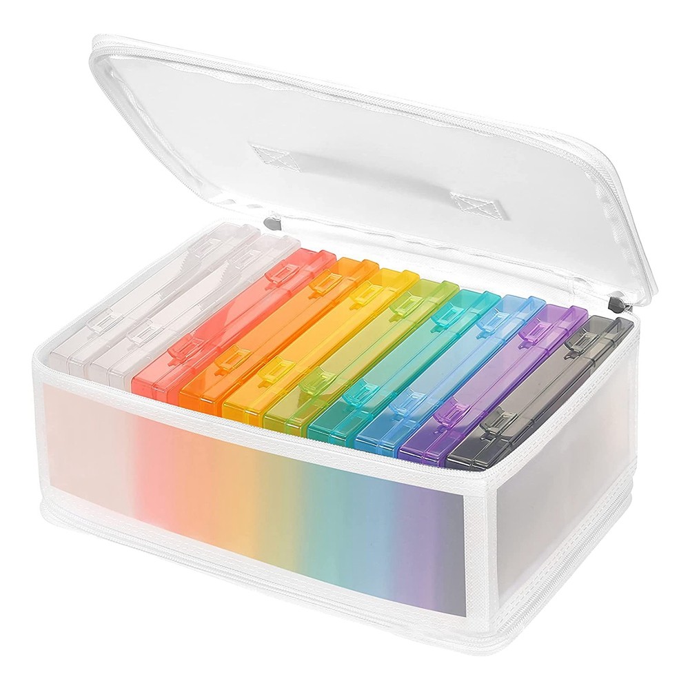 HEFTMAN 5 x 7 Rainbow Photo Storage Boxes - Clear Plastic Seed Storage Box Organiser with 6 Inner Photo Cases, Holds up to 600 Photos, Greeting Card Organiser for Office Supplies, Cables, Stickers