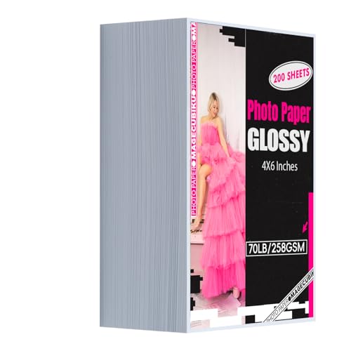 Inkjet Photo Paper A6 (10.16cmx15.24cm),Glossy 200 Sheets 258 GSM Photographic Paper for Printer Premium Heavyweight Instant Dry Professional Postcard Picture Use Dye Ink