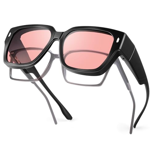 Fyozyon Fluorescent-41 Rose Tinted Fit Over Blue Light Blocking Glasses for Migraine, Light Sensitivity, Photophobia JF7201 (Matte Black Frame Pink Lens)