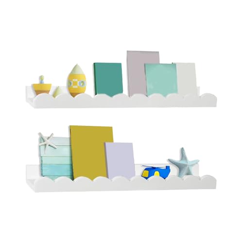 ZCSXK Floating Book Shelves for Wall, Scalloped Wall Storage Decor - Floating Wooden Book Shelves,for Bedroom Bathroom Nursery Room Playroom Plants Toys Photos Frames