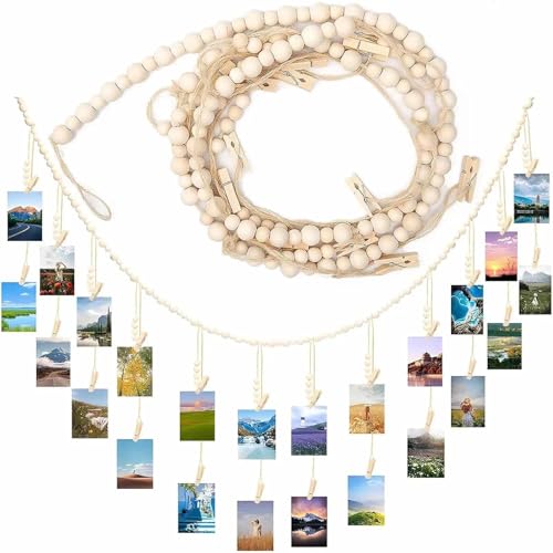 saijer Hanging Photo Display, Boho Wall Decor Hanging Photo Frame With 24 Clips Collage Hanging Picture Frames with String For Home Decoration Can Hang Postcards Photos Souvenirs