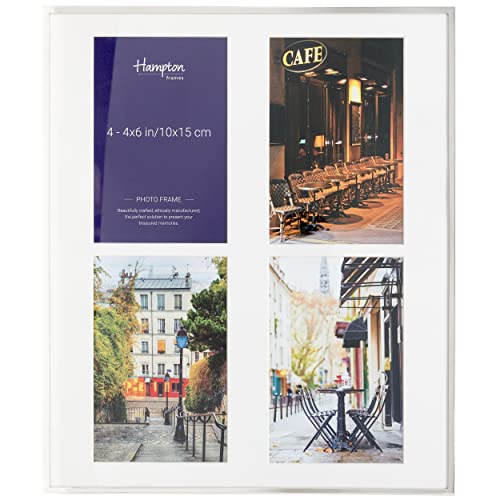 Hampton Frames | MAYFAIR Multi Aperture Photo Frame BSN4AP46S | 4x6 (10x15cm), Silver, Glass | 4 Openings, Velvet Back, Freestanding or Wall Mount | Display for Photos