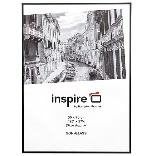Hampton Frames | Poster Frame | 50x70cm, Black, Rectangular, Aluminium | Perspex Front, Wall Hanging, Easy Access Spring Clips | Modern Display for Posters and Photos