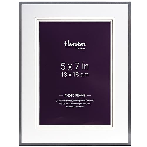 Hampton Frames | Photo Frame | 5x7 (13x18cm), Silver, Rectangular, Aluminium, Glass Front | Freestanding or Wall Mount, Velvet Back, Portrait or Landscape | Elegant Display for Photos