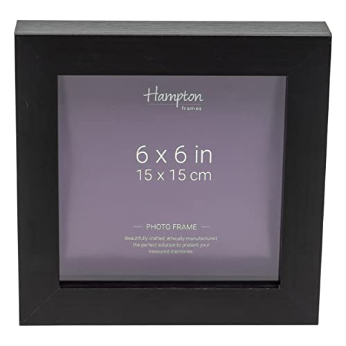 Hampton Frames | Photo Frame | 6x6 (15x15cm), Black, Square | Deep 35mm Profile, MDF Wood Effect, Acrylic Aperture | Freestanding or Wall Mount, Display for Photos