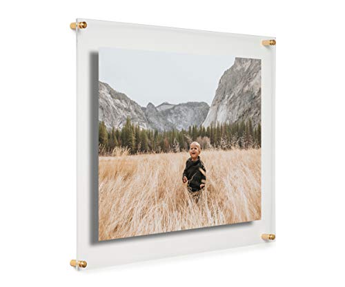 Cool Modern Frames 8x10 Clear Double Panel Floating Acrylic Picture Frame Display with Gold Hardware for Displaying Art and Photos on Wall