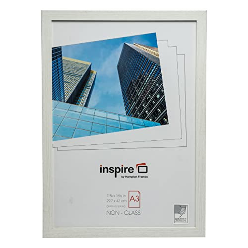 Hampton Frames | A3 Picture Poster Photo Frame BERA3NG | 30x42cm, White, MDF, Acrylic Non-Glass | Wall Mount, Landscape or Portrait, Drop-In Back | Modern Display for Certificates, Photos