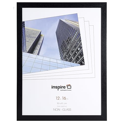 Hampton Frames Oxford Picture Frame | 12x16 Inch (30x40cm), Black, MDF, Acrylic Front | Wall Mount, Landscape or Portrait | Modern Display for Photos, Posters, Certificates