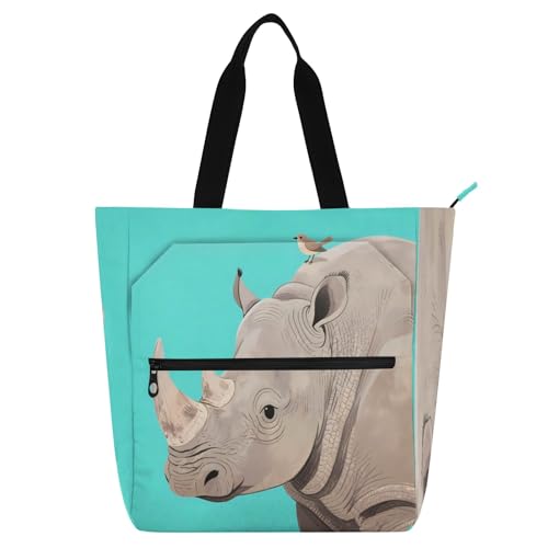 Nexawaveo Waterproof Piano Bag for Lessons Rhino and Bird Turquoise Music Tote with Zipper Pockets for Sheet Music & Books