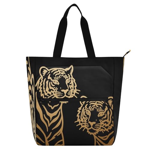 Nexawaveo Waterproof Piano Bag for Lessons Golden Tigers Black Music Tote with Zipper Pockets for Sheet Music & Books
