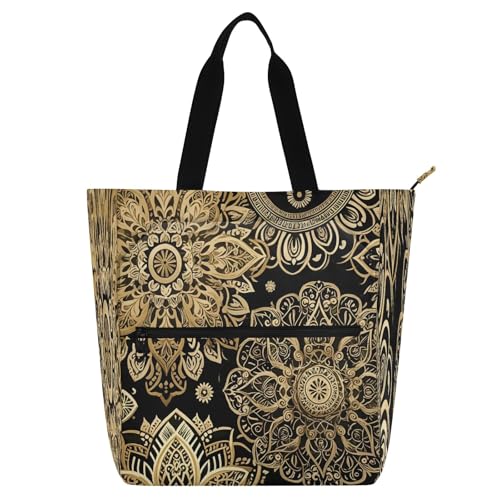 Nexawaveo Waterproof Piano Bag for Lessons Ornate Mandala Black Gold Music Tote with Zipper Pockets for Sheet Music & Books