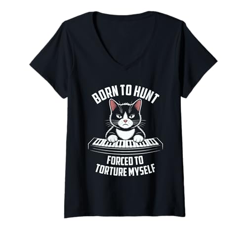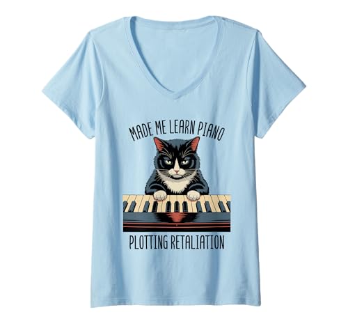Women's Piano Lessons Cat Classic Music Kitten Pianoforte Pianist V-Neck T-Shirt