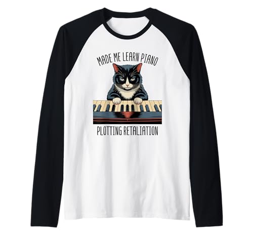 Piano Lessons Cat Classic Music Kitten Pianoforte Pianist Raglan Baseball Tee