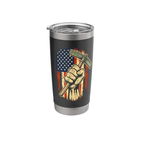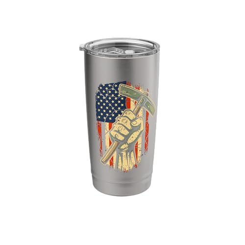 Patriotic American Flag Miner Pickaxe Labor Day Stainless Steel Insulated Tumbler