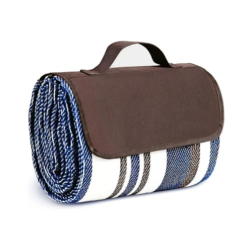 Waterproof Foldable Outdoor, Extra Large Picnic Blankets,Fashion Handy Tote,Beach Mat For Spring Summer Campingnkets(Blue White Bars)
