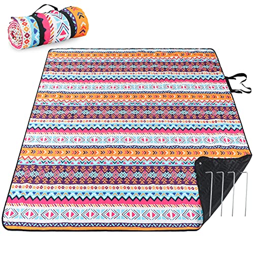 PY SUPER MODE Picnic Blankets Extra Large, Waterproof Foldable Outdoor Beach Blanket Oversized 83x79” Sandproof, 3-Layer Picnic Mat for Camping, Hiking, Travel, Park, Concerts-Bohemian Brown