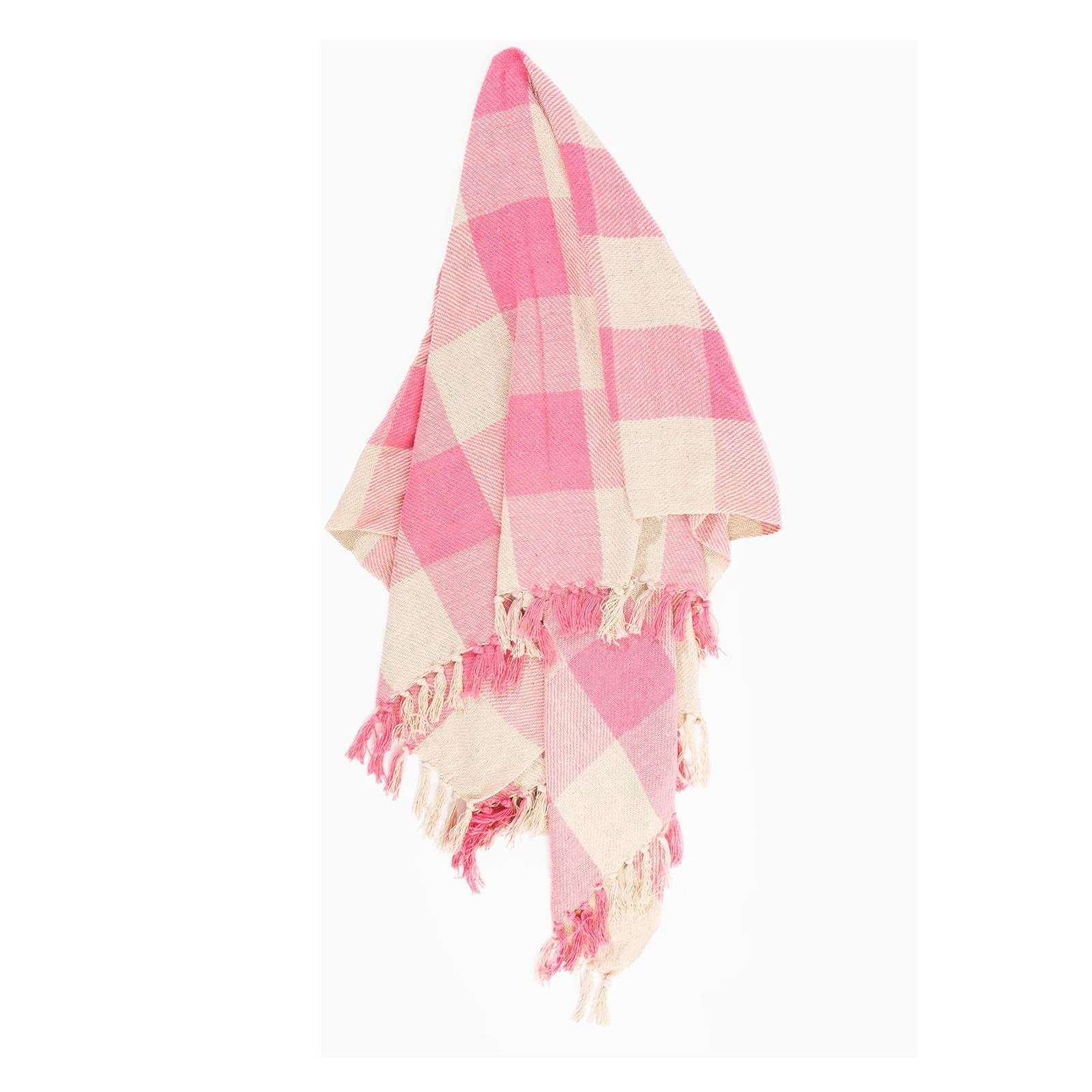 Gingham Blanket Throw Pink Decor Large Sofa Throws Bed Blankets Picnic Travel