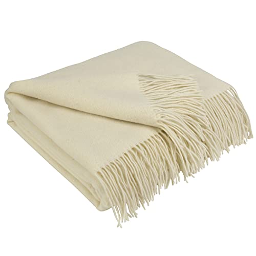 LYHome Cashmere Blanket with Merino - Wool Throw, Sofa Bed and Couch Large Bedspread, Extra Soft Warm Throws for Sofas Chairs, Single Double Size Picnic Blankets 55x79 in, 140x200 cm White Herringbone