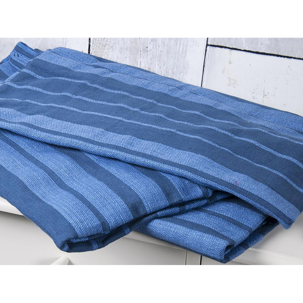 (Navy Blue, Throw) 100% Cotton Striped Picnic Blankets & Cushions