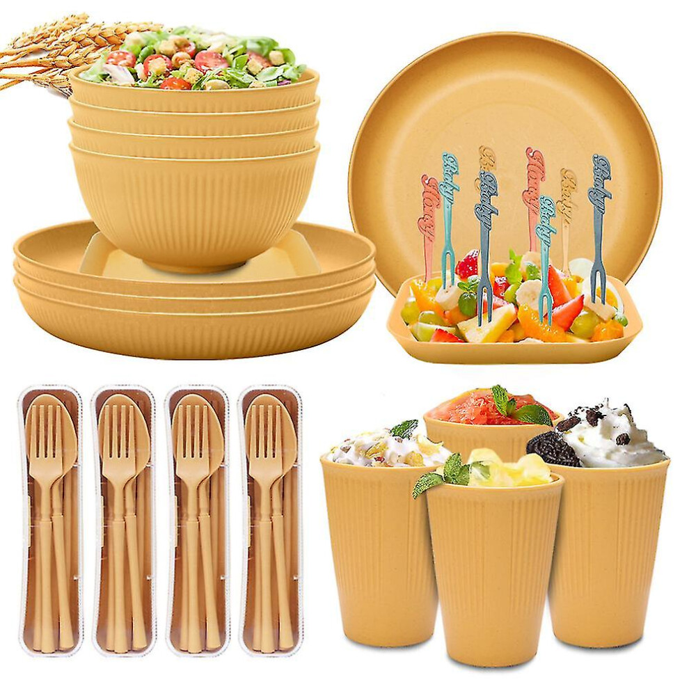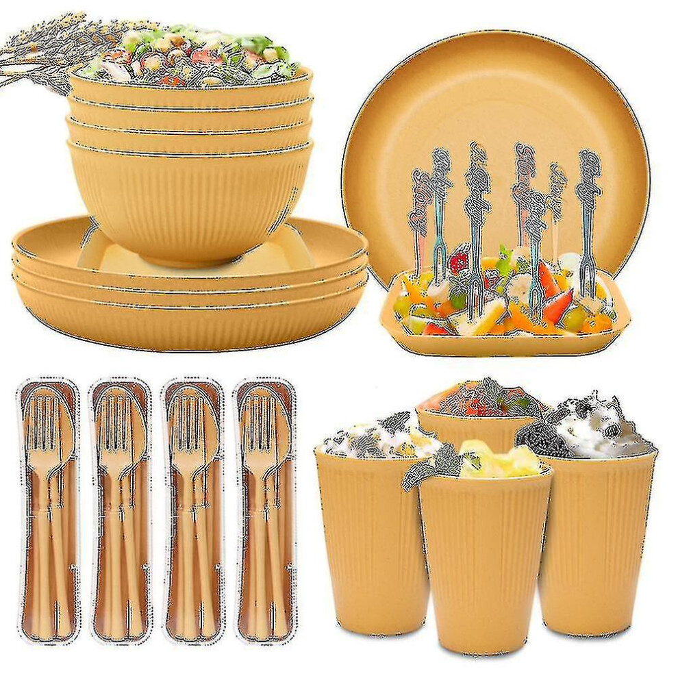 (Yellow) Unbreakable Dinnerware Sets Camping Plates And Bowls Set Plastic Picnic Dinner Sets