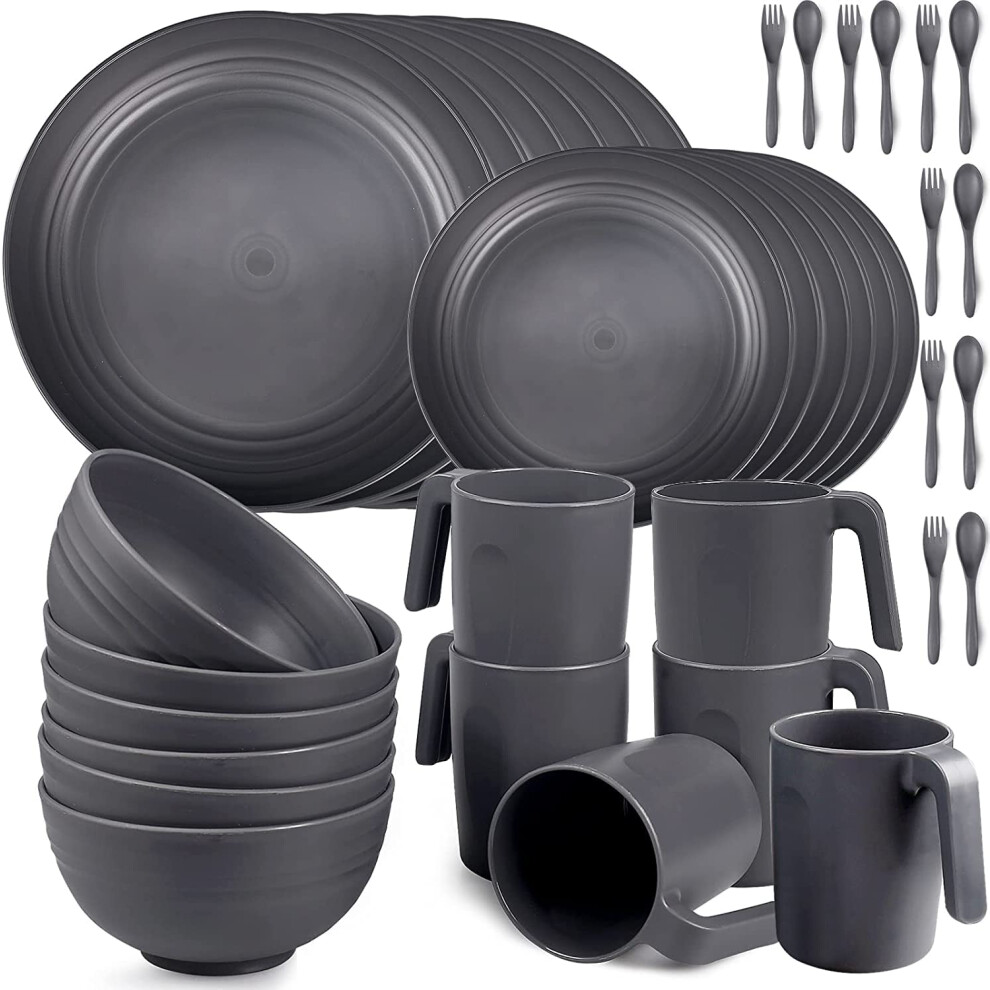 36pcs Unbreakable Dinnerware Sets for 6 People, Camping Plates and Bowls Set, Plastic Picnic Dinner Sets, Lightweight BBQ Serving Plates, Bowls, Cups,